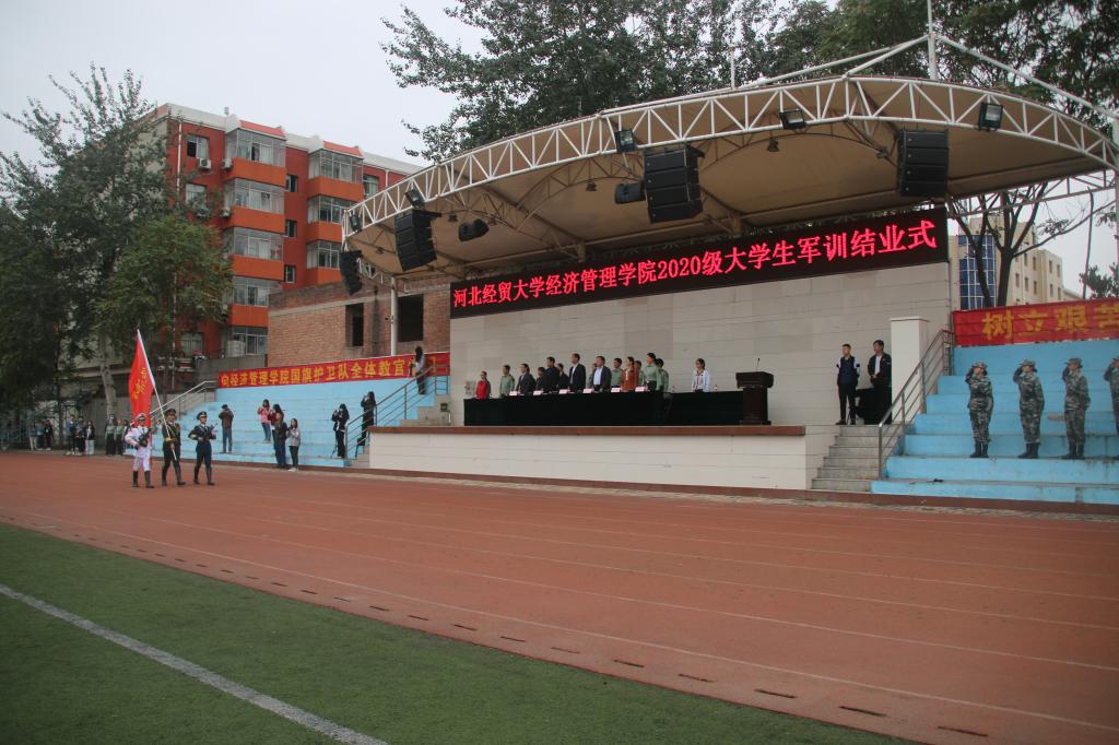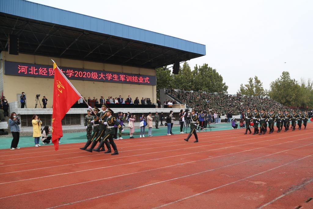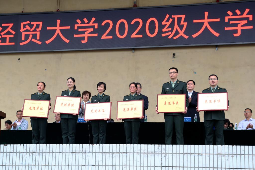 程瑞芳与学生处负责人分别宣读了2020级大学生军训工作各项获奖名单。商学院、公共管理学院、金融学院、艺术学院、财政税务学院、旅游学院被评为2020级大学生军训工作先进单位;商学院刘炫君等226位同学荣获“河北经贸大学2020级大学生军训标兵”荣誉称号;陈达锦等18位帮训教官荣获“河北经贸大学2020级大学生军训优秀教官”荣誉称号。